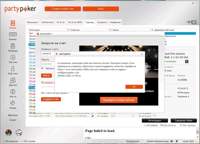 Как многие знают, есть ряд проблем с логином в клиент PartyPoker с территории РФ. Покер-рум собирает информацию об ошибках, чтобы игроки могли беспрепятственно заходить в клиент.