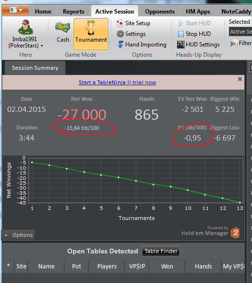 2) В данный момент марафоним, опять со дна. Bankroll Building 2 300$ ----> 1500$