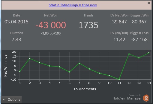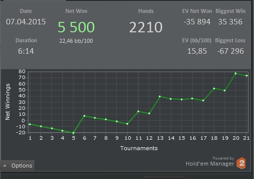 В данный момент марафоним: Bankroll Building v.1 400$ ---> 1500$ 1 марафон завершен 400$ -----> 1720$2)