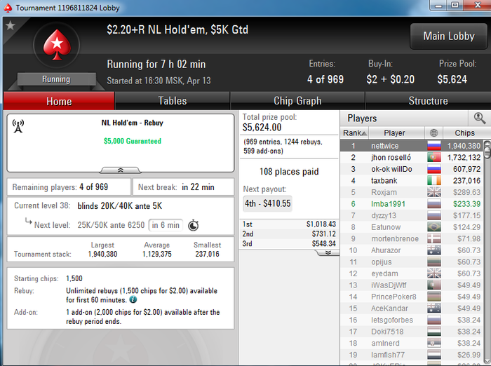 В данный момент марафоним, опять со дна. Bankroll Building 2 300$ ----> 1500$марафон завершен. 300$ ------> 1400$ 3)В данный момент марафоним, цель выиграть 1000$ на отдых до 1 июля