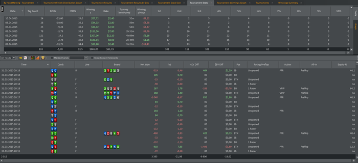 Ребят,всем привет!На форуме я новенький.Решил попробовать для себя новую дисциплину и оказался не сильно доволен результатом.Вроде пуш- бот не плохой,стараюсь играть пост флоп по-возможности,когда блайнды позволяют,а не пихать сразу.Но рой в итоге отрицательный,я понимаю конечно,что выборка маловата,но все же.В общем суть вопроса:это просто полоса неудачная или лики в моей игре?Я все же полагаю,что очень много вылетаю на БАБЛЕ.Рассудите пожалуйста.