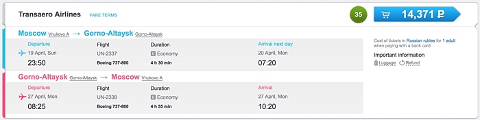 Варианты перелета для тех, кто отправится на всю серию: туда - 19, обратно - 27 апреля (аэропорт в Горно-Алтайске принимает самолеты не каждый день):
