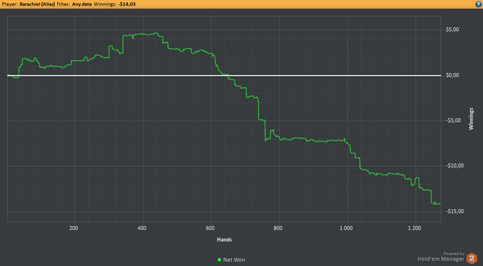 Год назад было всё ровно так же, что удивительно и суммарно в неплохих турнирах с первым призом в полторы-две тысячи баксов я вылетел на предфиналке за чиплидеркский стек 5 раз из 5, выставившись с эквити 90%+