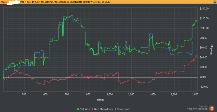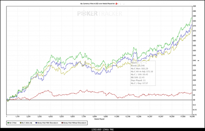 Если коротко о себе, катал пару месяцев назад нл2-нл5. Потом сломался комп + последний год учебы в универе, вообщем за 4 месяца от силы 120к рук сыграл. В целом планирую скидывать графики раз в неделю