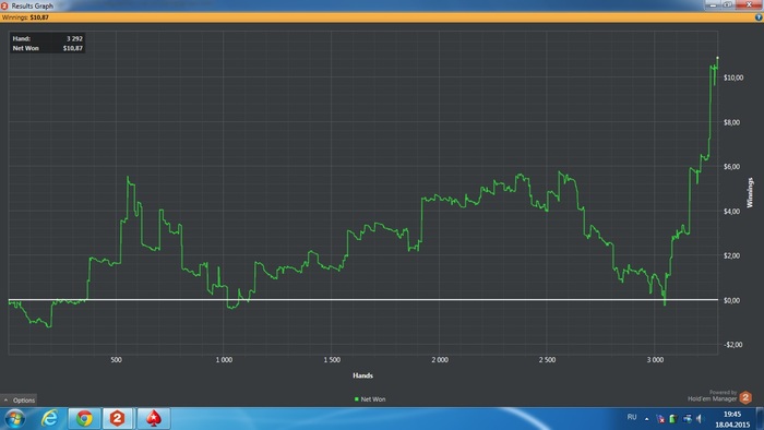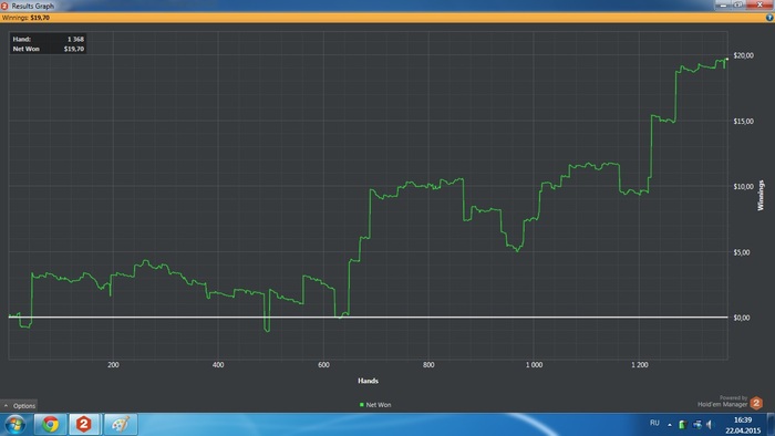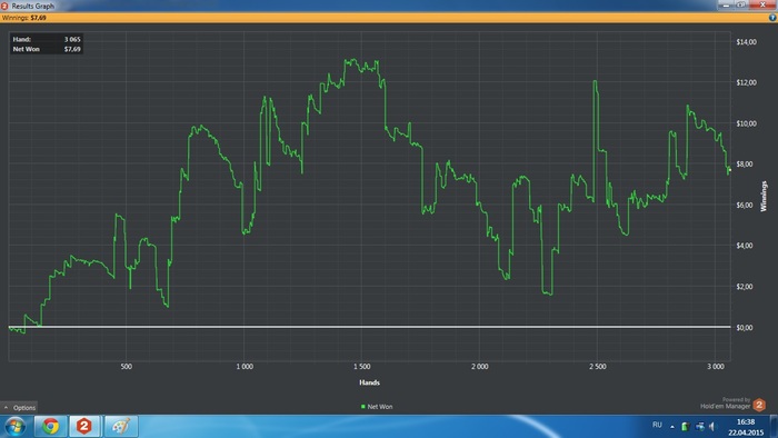 За вчера. Что-то я долго разыгрываюсь, мысли не те в голове и анализ из-за этого слабеет. Первую покупку которую я хочу сделать - это Holdem Manager, чтоб катать зум со статами непосредственно за столами. А то без статов как дичь.