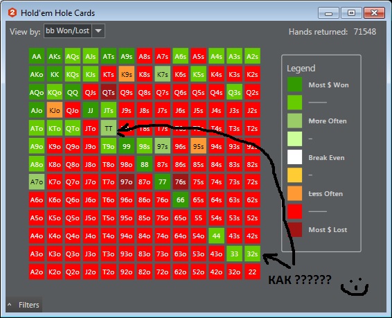 ДАвно заметил за собой такую штуку -это касается не только покера,а вообще жизни в целом- ,если у меня все идет хорошо ,то я уверен в себе и даже мысли не допускаю о каком-то негативном развитии событий ,но если у меня что-то не получается ,то все начинает валиться из рук , сразу предпологаю самое худшее и ЗАРАнее к этому готовлюсь