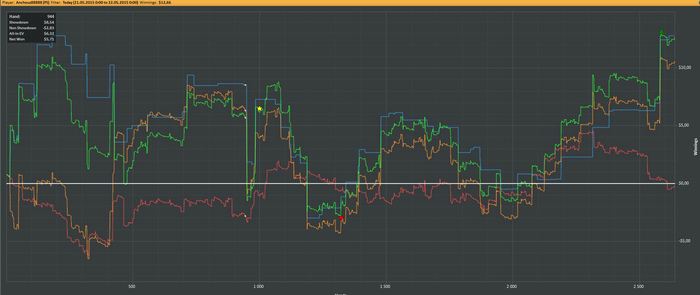 Желтая скаканула вниз, изза раздачи в которой я с AQ переехал КК, заколил парня который в 4 раздачах три раза поставил аллын...