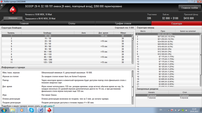 zva2811 @ 25.5.2015 сказка о закрытии регистрации по причине занятости всех столов-ложь и не может служить оправданием вашего нарушения. вы сами обьявили возможный максимум игроков=10.000 человек.. только при достижении этого количества игроков ранее обьявленная 4 часовая поздняя регистрация могла закончится раньше... ЛЮБОЙ ДРУГОЙ СЛУЧАЙ НЕ МОЖЕТ БЫТЬ ОПРАВДАНИЕМ .