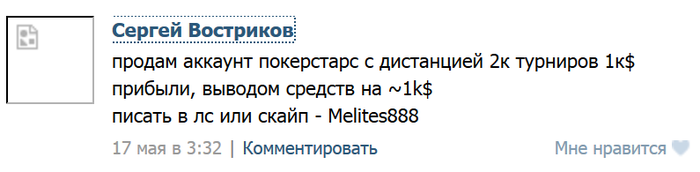 vitun87 @ 31.5.2015 Ребята,помогите найти вот этого вот персонажа www.gipsyteam.ru/profile/MelitesTMLR Данный тип кинул на 168$. Может у кого есть инфа по нему.Заранее спасибо.
