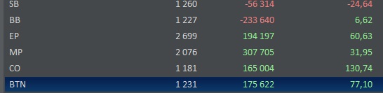 Правда следующей же рукой половина стола зашла по 40 фих,чувак с другой половины её минзатрибетил по 60 фих,наша вторая половина дружно заколлила по 60 фих,я на СБ-ББ обнаружил AKs и ничего кроме пуша не смог придумать в это месиво :)