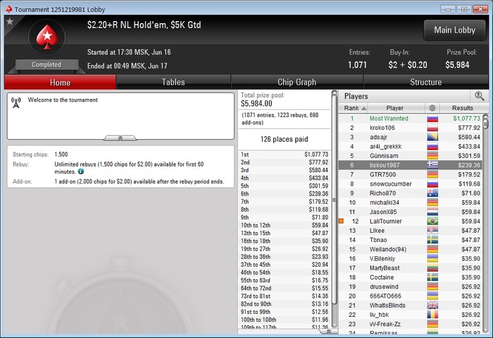 Цель до 31.08.2015 сделать банкролл 1500 $