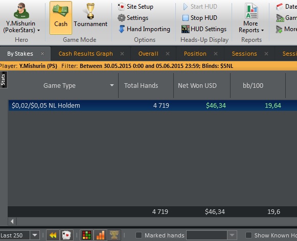 Доброго времени суток уважаемые читатели, в этом блоге я хочу Вам рассказать о начале своей игры и что из этого получится. Совсем недавно я у знал, что такое покер и решил поиграть, начал как уже понял потом, как обычный "ФИШ" играл разные дисциплины с разным байином и не понимал почему минус))))))))))). С января 2015г. я решил себе поставить цель: 1. Выбрать дисциплину. 2. Обучаться дисциплине. 3. Побить начальный лимит дисциплины. 4. И вот средний результат моих трудов.