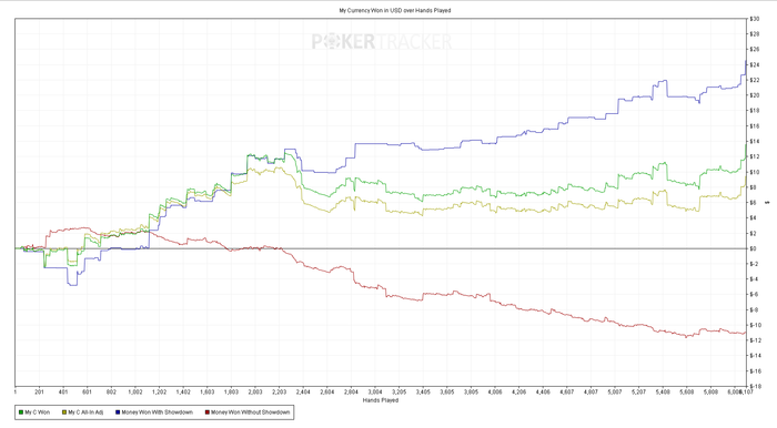 Чет я прям тильтанул.... Начал играть, первые 500 рук все норм, потихоньку вверх. Затем в ноль и -2БИ за 100 рук. Несколько кулеров от КулерСтарз подряд. Интересно, какая вероятность попадания за одним столом AA в KK в TT? Надо наверное уроки брать у парней с VPIP 50+, они явно что то знаю, потому что каждый второй фиш сидит со стеком 3-4БИ. Вот в жизни также, дуракам везет....