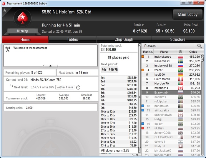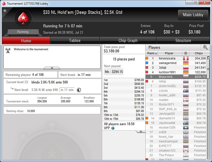 В итоге я отыграл около 85 турниров, после четверга уже шансов практически не было не было и в последние дни я половину турниров пропустил.