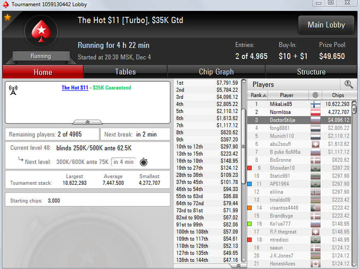 В тот период, когда работал в строительном, узнал о покере. Играл после работы, до работы. Так продолжалось с 2011 по 2014 года, т.е. практически все время, что я и играю в покер. В какой-то момент дела пошли очень неплохо и я принял решение уволиться из магазина и попробовал зарабатывать только покером. Это было самой большой ошибкой. БР на тот момент был небольшим (уволившись, не было других накоплений). Жили с девушкой в съемной квартире. Покером заработать не получилось, так как понял, что не могу заниматься только покером, очень быстро от него устаю и не занимаюсь ничем другим. Перепробовал много чего - интенсивный отдых, покерную литературу, физкультуру, подъем в 6 утра, подъем в 6 ночи, не играть месяц, не пить, не курить, но ничего не помогало... БР уходил, счастье тоже, отсутствие "нормального" человеческого общества тоже. Когда было мало времени на покер, был уставший, жил с родителями - тащил. Как только стал много играть и накопился скил, жил "сам на себя" - заливал!? В чем может быть причина? Все изменилось чуть позже, после того, как я принял кардинальные меры: любимая девушка, новая работа (но с с удобным графиком и хорошей зп).