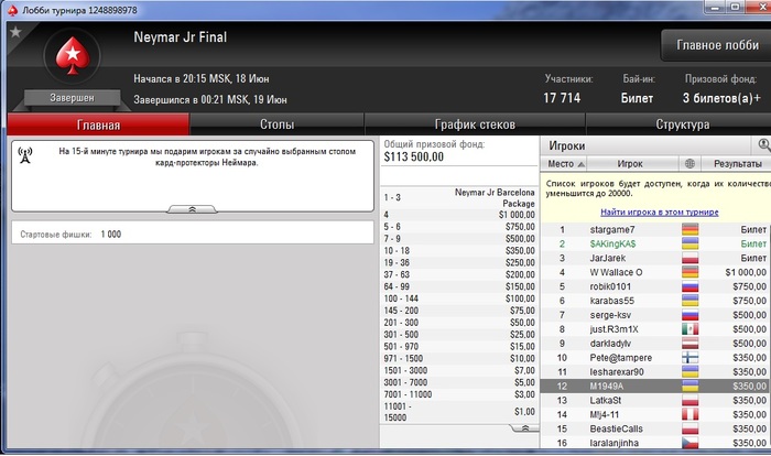 Что же касается обмена выигранного Вами пакета, то, к сожалению, обменять его на деньги полностью или частично невозможно. Единственный вариант - Вы можете передать свой приз другому игроку PokeStars, если Вы сообщите об этом желании не позднее 31 июля 23:59 ВВ (1 августа, 06:59 МСК).
