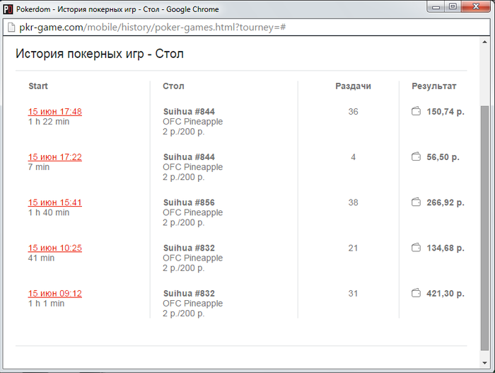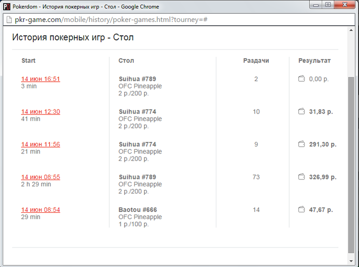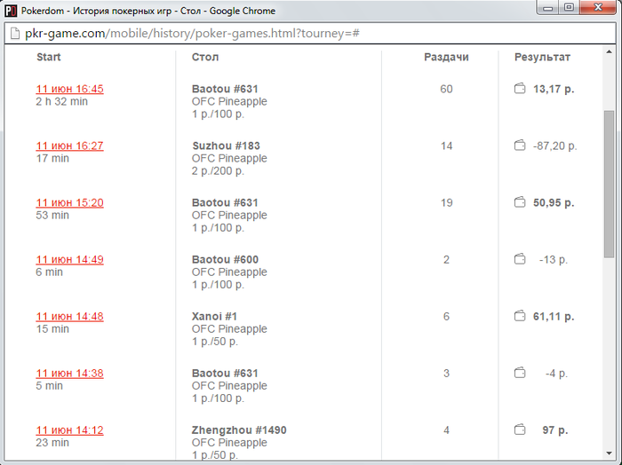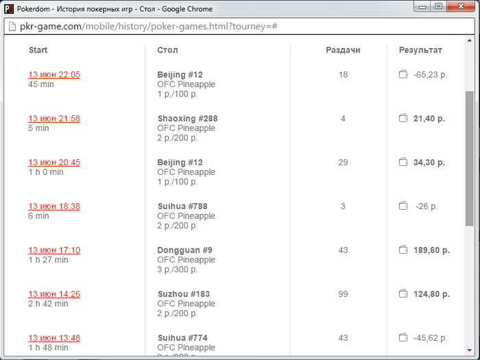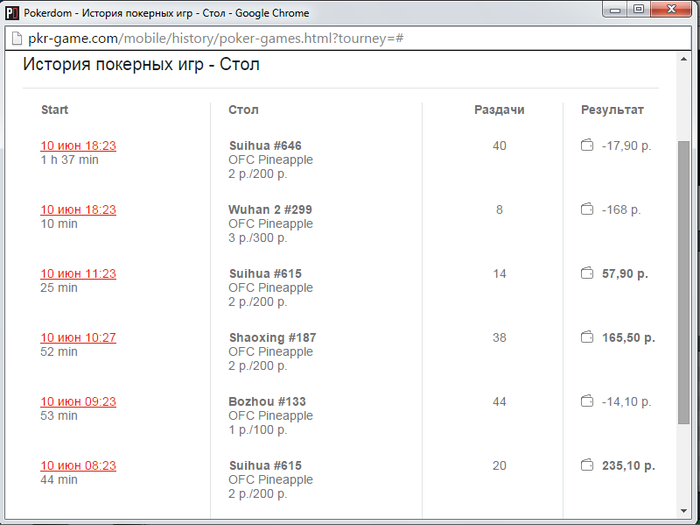 Жаль что нету покерных сайтов со статистиками Китайского покера так бы выложил свои так говорят Большие Победы), на удивление больших проигрышей не было)!