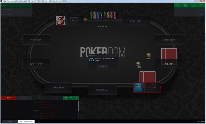 Недавно начал играть на PokerDom по причине того, что там сейчас проходит акция лучший турнирный игрок, в которой планировал выиграть титул лучшего игрока месяца и пару титулов лучшего игрока недели . К сожалению пока ничего не получилось и скорее всего титулов мне не видать , поэтому ставлю перед собой цель в течение июля увеличить в 2 раза свой БР на сайте (на данный момент он равен 8к р.), играя только МТТ. По мере возможности в этой теме буду делать записи о текущих результатах.