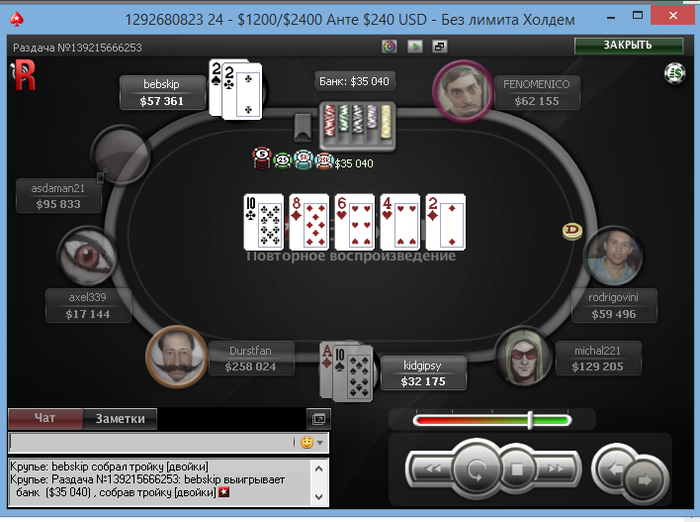 Играю без программ, поэтому думал все упадут, ибо знаю, что они с программами катают. Не думал, что с UTG чел за колит с A-9 разномастными против тайтово-агрессивного игрока.