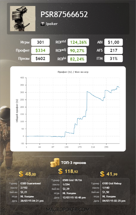 Человек, мужского рода, Российской принадлежности. 35 лет, разведен. С покером так или иначе шесть лет. С нового года начал понемногу уделять ему время. Попал в школу. До этого пару месяцев занимался с тренером по СНГ. Больших головокружительных успехов пока не нагнал. Сколько играю не поднимался на лимиты более 5$, сейчас на микролимитах, накатываю скилл. Школа и тренировки дают безусловно многое, в планах сделать покер главным видом дохода. Сейчас разрабатываю и внедряю коварный план по выходу на айпокер БИ 5-10$.