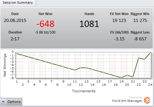 Вот пока статы 0.5$ 45max SnG. Сейчас начинаю играть 1$ 90max, так как БР позволяет.