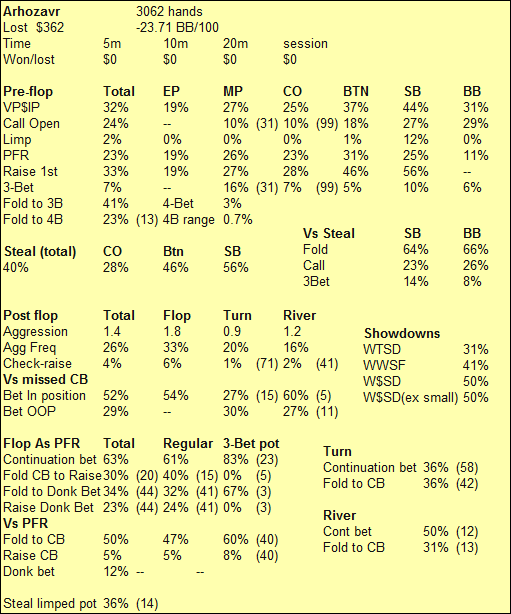 Если бы ривером пришла, скажем, не мастевая тройка, то все равно на такой большой и ровный бет я бы отваливался. В совокупности очень маленькой агрессии на ривере и WWSF можно сделать вывод, что он тут никогда бы не поставил третий раз с KQ например.