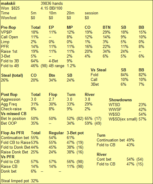 А ты не задумался на ривере что ты бьешь из его диапозона на ривере? человек не особо агрессивный 3 барыля блефом ставить не будет а из всего диапозона ты бьешь только блеф и карман младше ТТ, что в свою очередь тоже являются блефом. по мне я бы фолдил терн потому что 2 барыля ставить он уже вряд ли будет с воздухом, при закрывшимся фд. И еще я бы 3 бетил пре флоп. так ты бы сузил его диапозон и решения были бы куда проще.