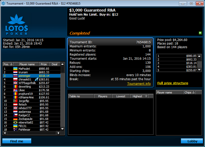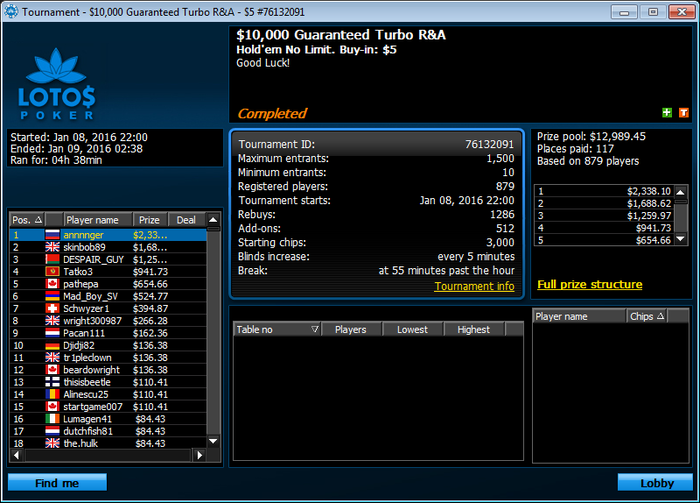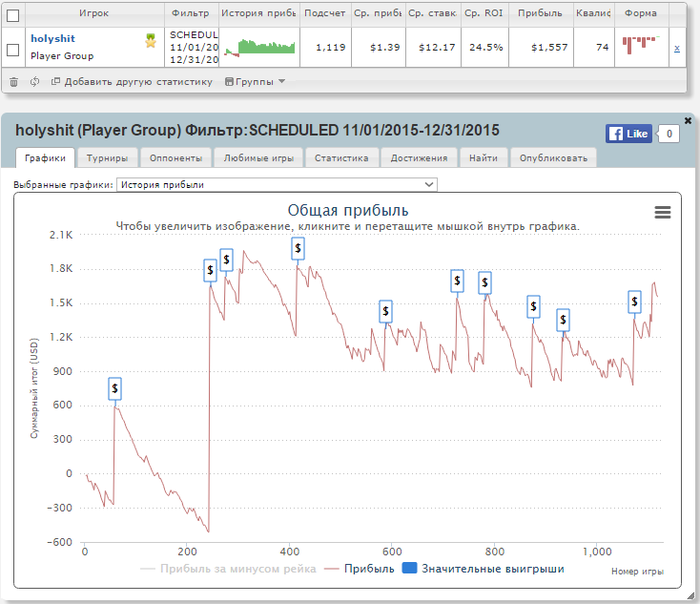 http://wearepokerplayers.comЦели на следующий год:Игру я поменял серьезно, но предстоит еще много работы. Нужно собрать все аспекты игры воедино, сейчас же у меня так: концентрируюсь на одном, например защиты блайндов, и упускаю остальные, т.е. недостаточно стилю, часто падаю на кб и т.д.