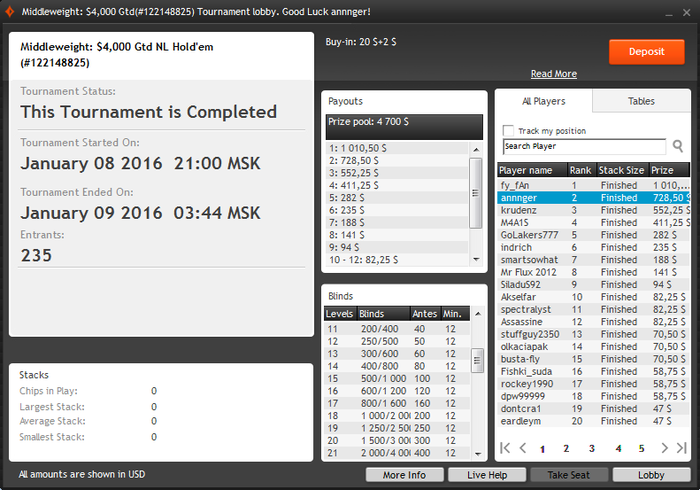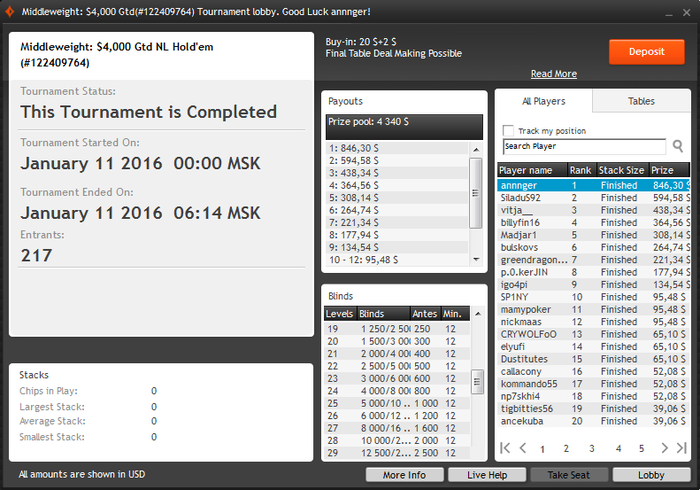 Из покерных целей на этот год у меня плотная работа над игрой и переход на abi $30-$50, что довольно оптимистично при моем текущем уровне игры.