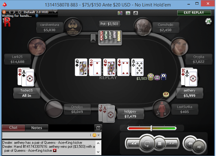 НО! В твоем вопросе я бы хотел обратить внимание на другое. НИКОГДА не позволяй выпавшим на борде картам после принятого решения усомниться в своем выборе. Все, что имеет значение - это то, какие шансы у тебя были, когда ты выставил все фишки в центр (или не стал этого делать), все остальное забота ГСЧ. Как видишь, на префлопе шансы были не в твою пользу, да и редко ты будешь впереди в такой ситуации и это главное.