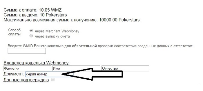 dahyhax18, на счет паспортных данных - уточните у администратора. В остальном - все верно. Вы нам переводите 10.05 ВМЗ, мы пополняем Ваш аккаунт покерстарз на 10$, а также выплачиваем соответствующий бонус. После чего Вы можете вывести всю сумму через нас или как-то еще в любой момент. Заодно получите приз зрительских симпатий за максимальный абуз нашей системы бонусов .