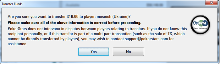 Пополнить счет PokerStars через OKWM можно: