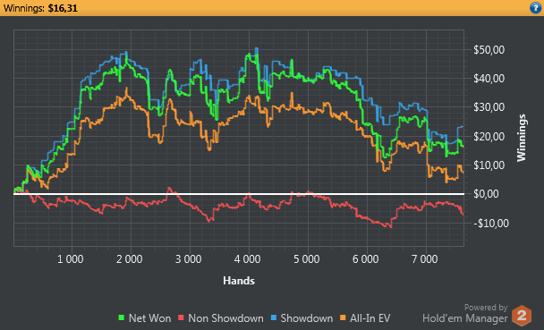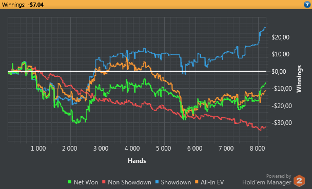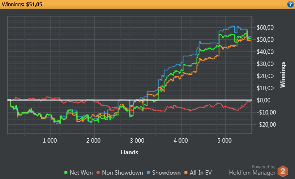 5 день Всего: 25 533 раздач Общий профит: $78,43 К сожалению, сегодня много времени не нашел для покера. Достичь отметки 100К рук будет очень трудно, но в любом случае буду идти до конца. Дисциплина хромает