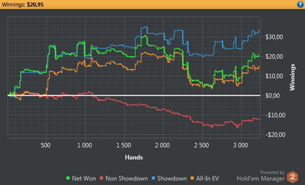1 день Всего сыграно: 5589 раздач. Поначалу было трудно играть сразу 12 столов, не запоминал действия оппонентов на предыдущих улицах. К вечеру привык. Ник не скажу