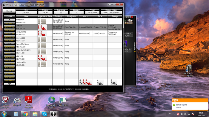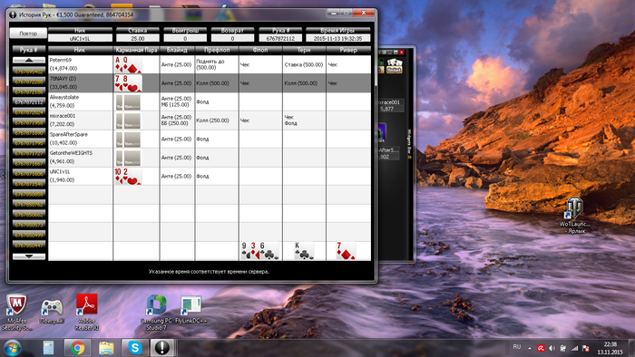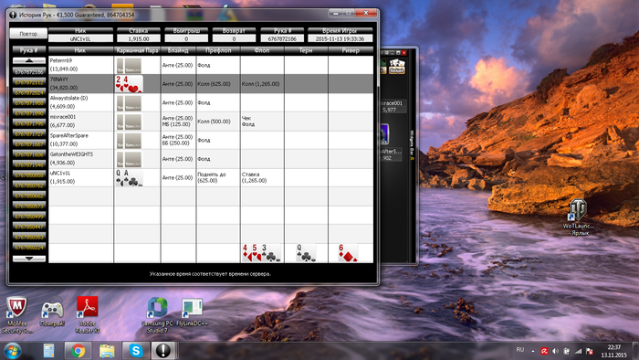 Уже давно рождались сомнения касательно Титан рума, но на фоне последних событий в скринах, терпение начинает реально заканчивается. Неужели так может заходить одному и тому же челу в турике за 20 евро.. Конечно не прореговский лимит, но и не совсем фишовый. Обращайте внимание на время и последовательность раздач. Очень хочется услышать адекватные комменты. Такие ситуации возникают не первый раз, но на этом турике решил уже фиксировать.