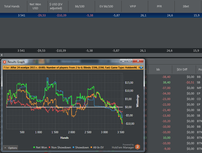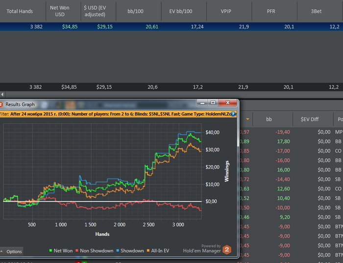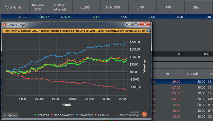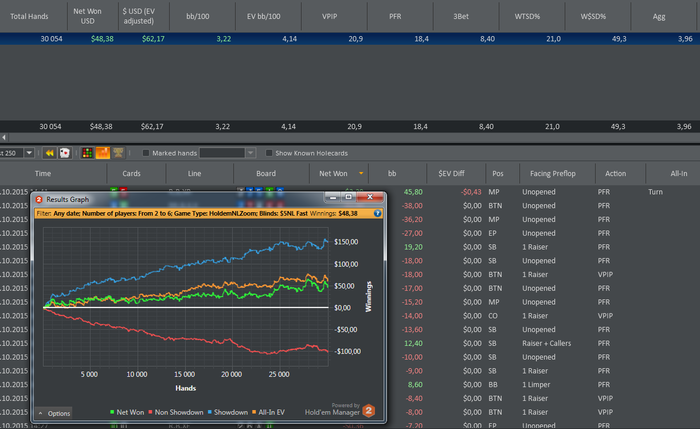 Есть еще очень много проблем, как на префлопе, так и на постфлопе (особенно в 3бет потах) + ко всему последнее время меня стали часто переезжать и качество игры, да и винрейт, немного упали. Вот решил как-то отвлечься и создать дневничок. Может в дальнейшем буду радовать красивыми графиками, а может кто-то мне в этом поможет
