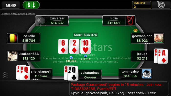Возможно QQ в данной ситуации можно было и выкинуть,но стеки средние 20к мой 15к,я с ранней позиции сделал минрейз и от следующего игрока получил олл ин 6к, и игрок с мб пихнул фишки,у него порядка 18к было. Я думаю что фолд был в такой ситуации в ранней стадии турнира,но не в данной. Игрок с мб мог таким же образом поступить с 99,1010,jj... А так же наверное AQ. Но мне нужно было удвоение,чтобы получить рабочий стек.