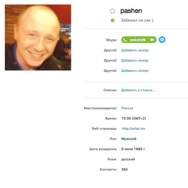 Просто к сведению. Вроде бы известный в коммьюнити человек. 365 контактов в скайпе.