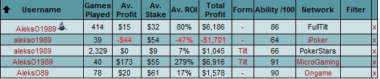 Играю почти во всех сетях, ник AleksO1989. Лимиты 20-80$. Ближайшая цель закрепиться на лимитах 100+, играя по БР 200АБИ.