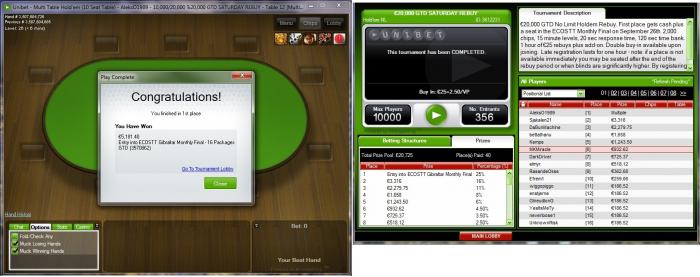 потом на юнибете у меня было два билетика по 4 евро, дают их в ребайнике по 5 в топ100, решил их поиграть, не понял куда выходят, но в другие саты, ну пофиг зарегался, все равно куда то деть надо… прошел один сат, попал в сат за 26, прошел его, зачем то сделав там аддон еще за свои, а сейчас попал в сат за 112, который будет в субботу вечером, который я не смогу сыграть, потому что у папы юбилей будет хз че делать.. а этот сат в сат за 725, а оттуда на оффлайн какой-то ) и деньгами сейчас нельзя забрать еще 112 ((