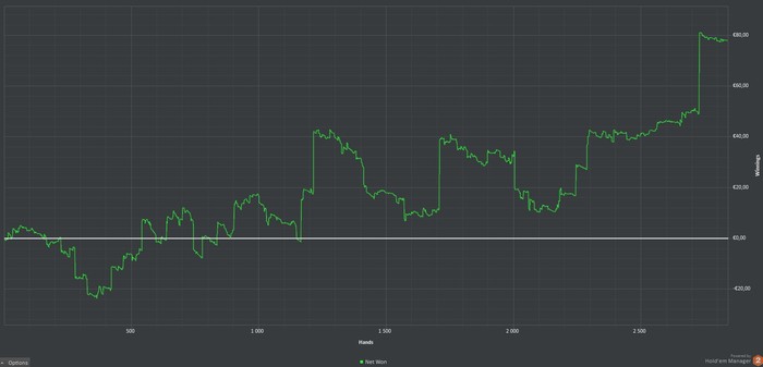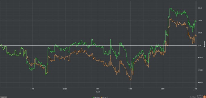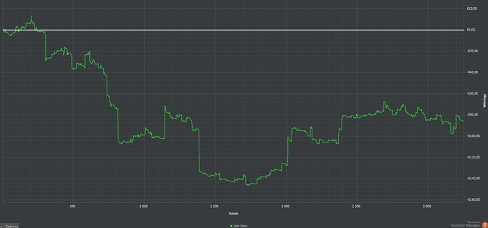 день 1 + € 119,58 4180 h сыграл 4 сессии по 1К раздач, на последней под утро подключил пару столов нл20, но там отыграл немного, ~350 рук думаю примерно такого графика по дистанции и буду придерживаться. приятно начинать марафон с плюса)