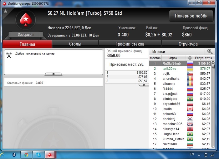 тащил далеко не изи гейм, ну как любую турбину впринципе, были моменты, когда стек оставался 2ББ, на финалку вышел с 8ББ, там разобрался норм, в хедзапе добил стек до равносильного сопернику, но так и не выкатал, вылетел А7<88.