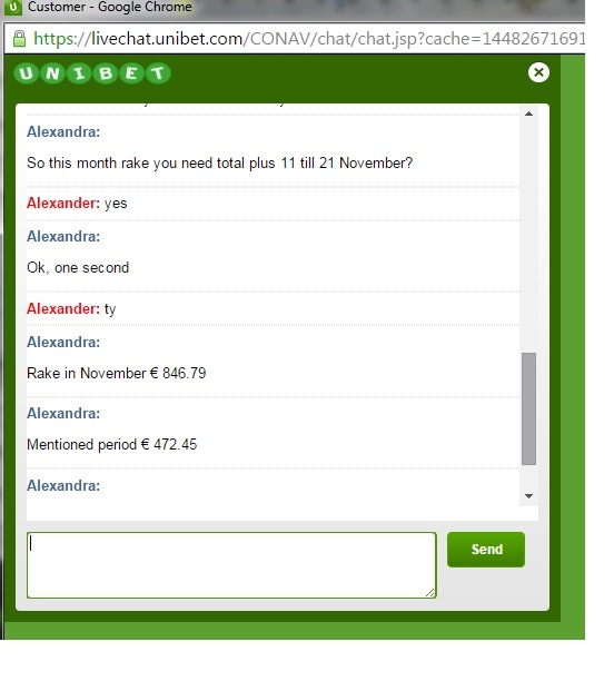 Привет! Извини, что не ответил сразу. Ситуация с данной рейк-гонкой оказалась действительно довольно запутанной, и результаты, которые нам присылали из Unibet, менялись несколько раз. Вообще, проверка правильности результатов была инициирована как раз твоим обращением в саппорт и обращением победителя всех трех этапов гонки по Украине - altcom. Он заметил, что результаты были сильно перекошены таким образом, что рейк за первый этап был сильно увеличен, а за второй сильно уменьшен. С ним я вел переписку на протяжении всей второй половины ноября, и ему удалось получить цифры о своем рейке за второй этап от саппорта Unibet, на которые мы и стали ориентироваться. К 20-м числам ноября Unibet признали, что у них полный беспорядок с отчетами и ведется разбирательство, откуда могла появиться ошибка. Об этом я писал в теме Unibet, там же указал что результаты на тот момент неверные и будут пересмотрены. Разбирательство продлилось до 3-го декабря, когда нам выдали окончательные результаты гонки. После этого я связался с altcom для уточнения правильности результатов и он указал, что в целом все похоже на правду (так как точный рейк на Unibet игроку действительно очень сложно посчитать), кроме второго этапа где у него рейка меньше примерно на 100 евро, чем по информации от саппорта. Так как гонку уже не видно, я выложу сюда скриншоты финальных результатов, а также, в качестве доказательств победы altcom, скриншот из саппорта Unibet, в котором победителю дали информацию о рейке за второй этап гонки.