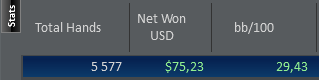 Открыл для себя "горячие клавиши" на покерстарс,отличная функция!По с равнению с тем как я раньше играл в румах сети Ipoker,ongame и 888,я попал в рай.Теперь стало играть намного проще,быстрее все происходит.Открыл максимум столов стопкой и сиди только нажимай на клаву,периодически подключая мышку.В чем-то жалею что потерял много времени играя в других румах.Здесь просто все создано для мультитейблеров к каковым я себя отношу.Но,если посмотреть с другой стороны,то я получил бесценный опыт,играя на меньшем количестве столов чем здесь.Ведь как известно - чем меньше столов играешь,тем более обдуманно совершаешь то или иное действие во время раздач.Соответственно винрейт выше.Надеюсь что в сокром времени я доберусь здесь до нл100 как в других румах в свое время.Это в принципе и есть мой план на игру - добраться до нл100 в ближайшие месяцы