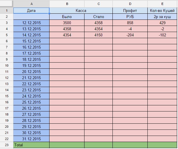 Веду табличку в экселе, но закранил с начала и не считал руку, поэтому пока считаем только профит и куши =(