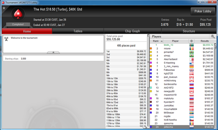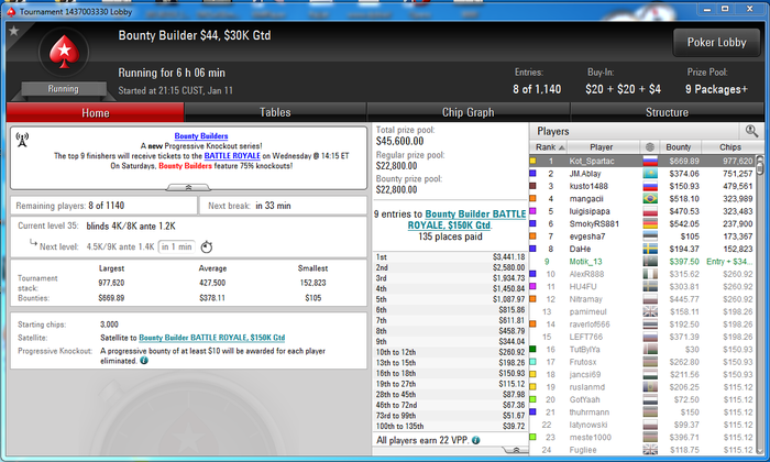 https://forum.gipsyteam.ru/index.php?viewtopic=108976&gopid=4215615&#entry4215615 Начало было не плохое,куча итм, 11место 13.50нок 10к aj<tt, 22место 5 1р1а 6к ( рег рейз с катофа,я на батоне пуш с 16бб с а8с и он имея такой же стек колит с кд и забирает банк,порой я удивляюсь игре таких регуляров). Главное мотивация есть играть и тащить. Буду отписывать тут тоже результаты пакета. Сыграно 31/1000 , профит -70$