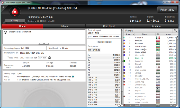 Раньше играл лимиты до 100$,но бр выводил купил машину себе и т.д. В данный момент спад у меня и поэтому играть буду пока турики до 30$, теперь ближайшее время выводить не собираюсь и постараюсь возобновить бр и подниматься по лимитам.