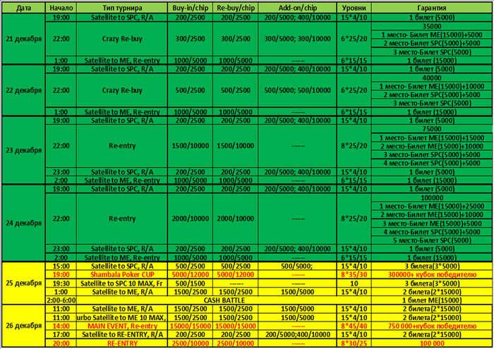 25 декабря SHAMBALA POKER CUP
