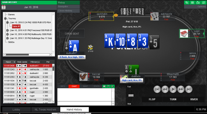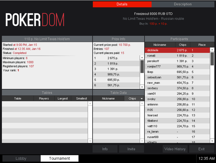 думаю, на покердоме ситуация получше с винрейтами, но, как ни странно, в большинстве турниров на доме гораздо более плавная структура, нежели на пати или айпокере, и, когда выигрываешь в эфф стеках 50бб, а не 15, винрейт выше. А рои на покердоме сейчас у меня такой, что его неприлично показывать на публике