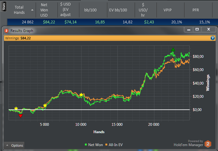 Всем привет.Мне 18 лет,играю кеш НЛ2 дип стек.Играл все что угодно и мтснг,и снг,и спины.Но решил остановиться на кеше. Бр=117.05$ Базу сносил,это с начало года(месяца) Дневник создал для отчетов и мотивации,поиска друзей. Всем удачи